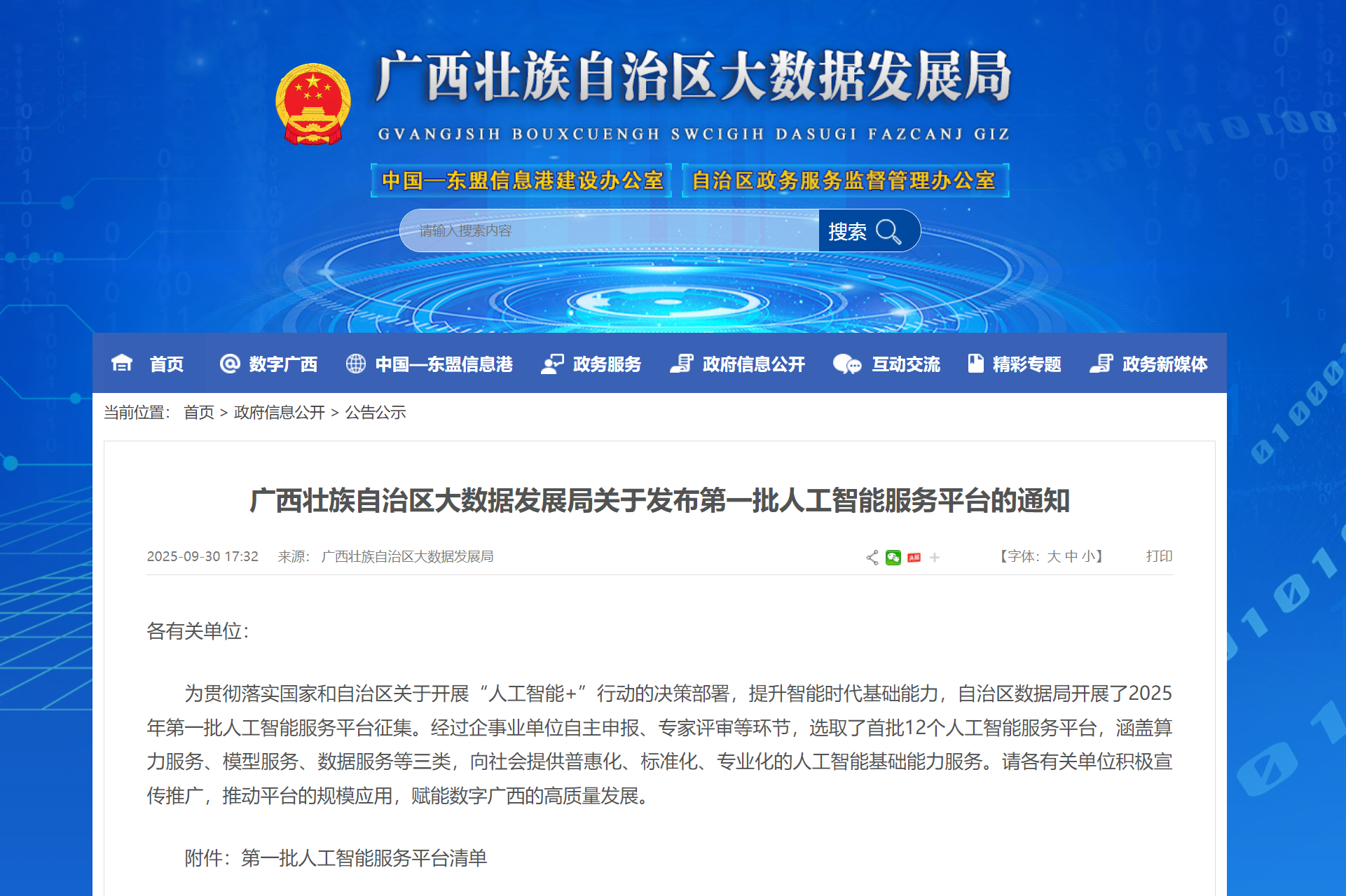 北部灣大數(shù)據(jù)交易中心成功入選廣西首批人工智能服務(wù)平臺名單 2025-10-10